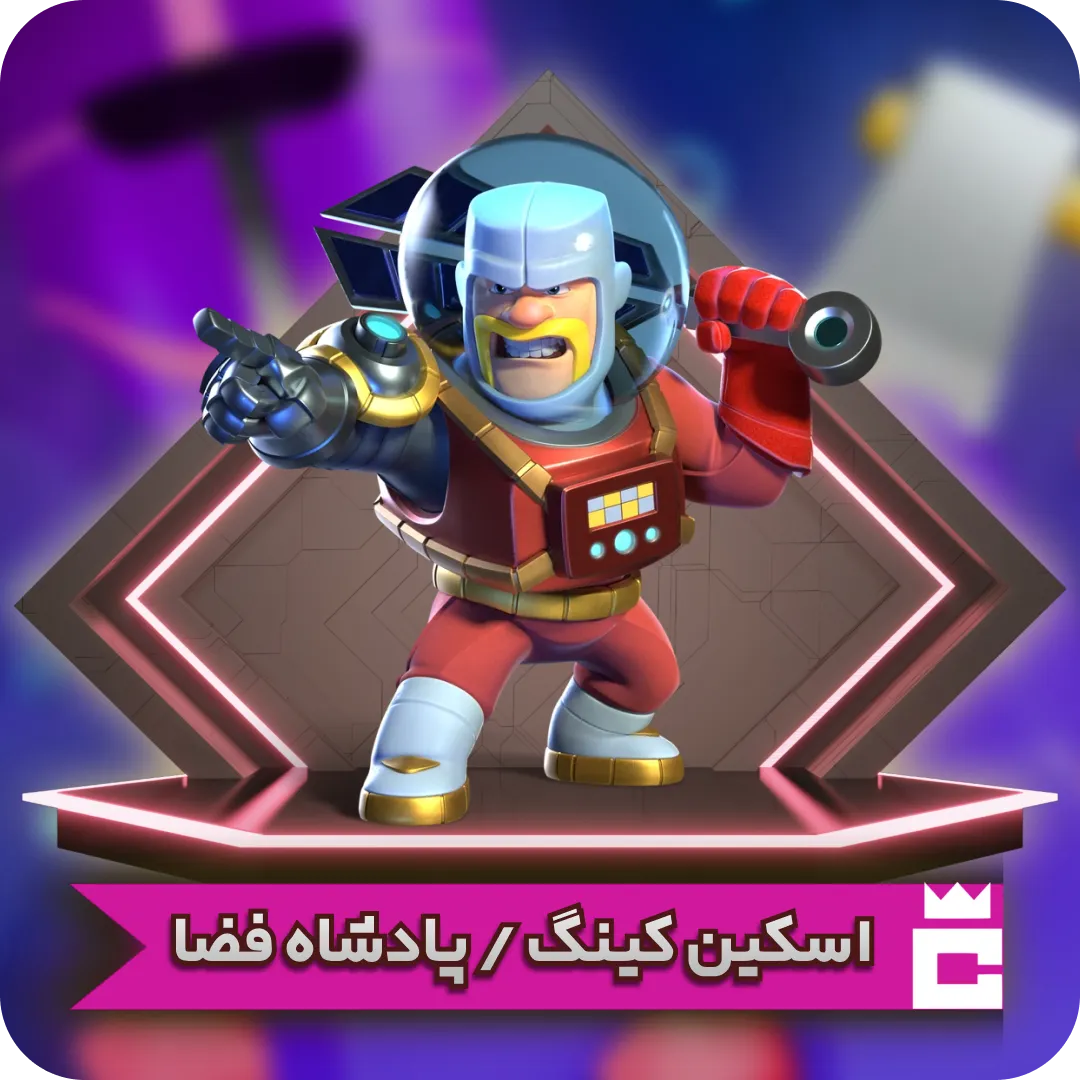 اسکین کینگ (پادشاه فضا) در بازی کلش آف کلنز، یک اسکین منحصر به فرد برای قهرمان باربارین کینگ است که او را به یک فرمانده فضایی با زره مدرن و جلوههای نورانی فضایی تبدیل میکند. این اسکین با طراحی پیشرفته و ظاهر قدرتمند، باربارین کینگ را به یک پادشاه واقعی فضا تبدیل میکند و به نبردهای شما جلوهای متفاوت و جذاب میبخشد. اگر به دنبال ارتقای ظاهر قهرمان خود و ایجاد تنوع در بازی هستید، اسکین پادشاه فضا یک انتخاب عالی برای شماست!