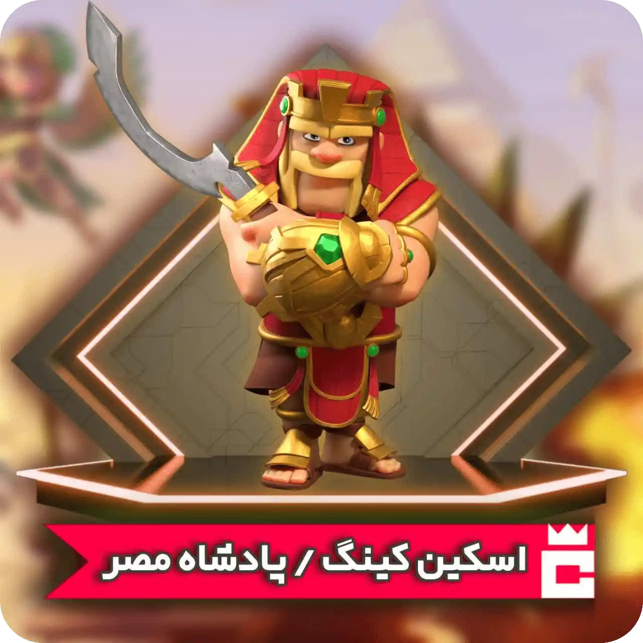 اسکین پادشاه مصر برای قهرمان کینگ در بازی کلش اف کلنز، یکی از محبوبترین و خیرهکنندهترین اسکینهایی است. که با الهام از شکوه و جلال مصر باستان طراحی شده است. این اسکین با ظاهر شکوهمند خود، پادشاه قهرمان شما را به یک فرمانروای واقعی تبدیل میکند. که آماده است تا در میدان نبرد، به همه نشان دهد که کیست. اگر به دنبال ایجاد تغییرات بصری چشمگیر در بازی خود هستید، اسکین پادشاه مصر بهترین انتخاب برای شماست.